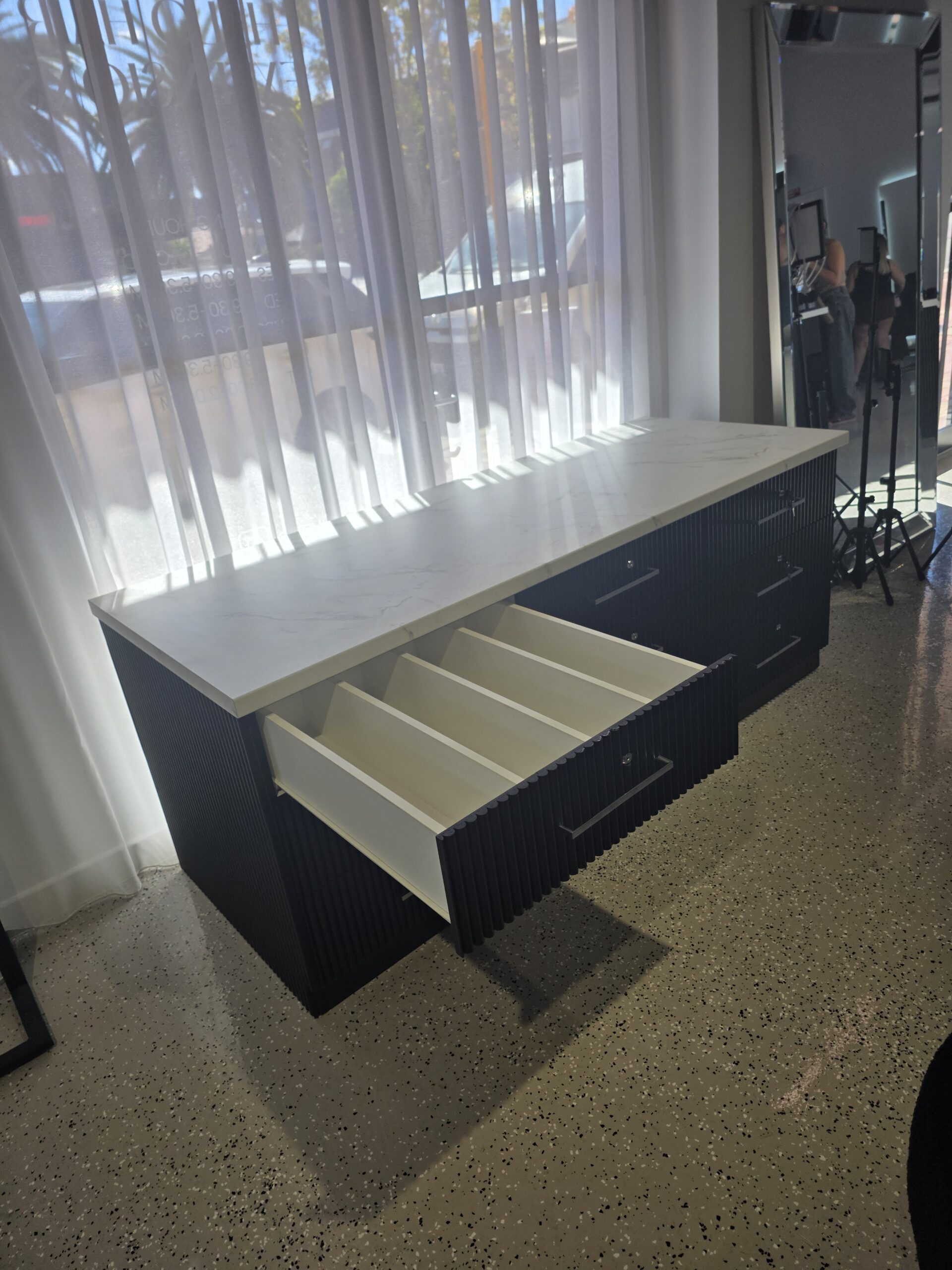 At Andrews Constructions, we design and build custom cabinets and cabinetry that are tailored to suit the unique needs of each client. Well-built cabinetry can transform a space by improving storage, organisation, and overall appearance. Whether you need cabinets for a kitchen, office, reception area, retail space, or another commercial or residential setting, Andrew works closely with you to create a solution that fits perfectly with your space and how you use it. Because every project is custom-built, the cabinets can be designed to match the exact size, layout, and style you need. From modern and minimal designs to more traditional cabinetry, Andrews Constructions focuses on creating pieces that are both functional and visually appealing. The goal is to provide practical storage solutions that also enhance the look and feel of your space.